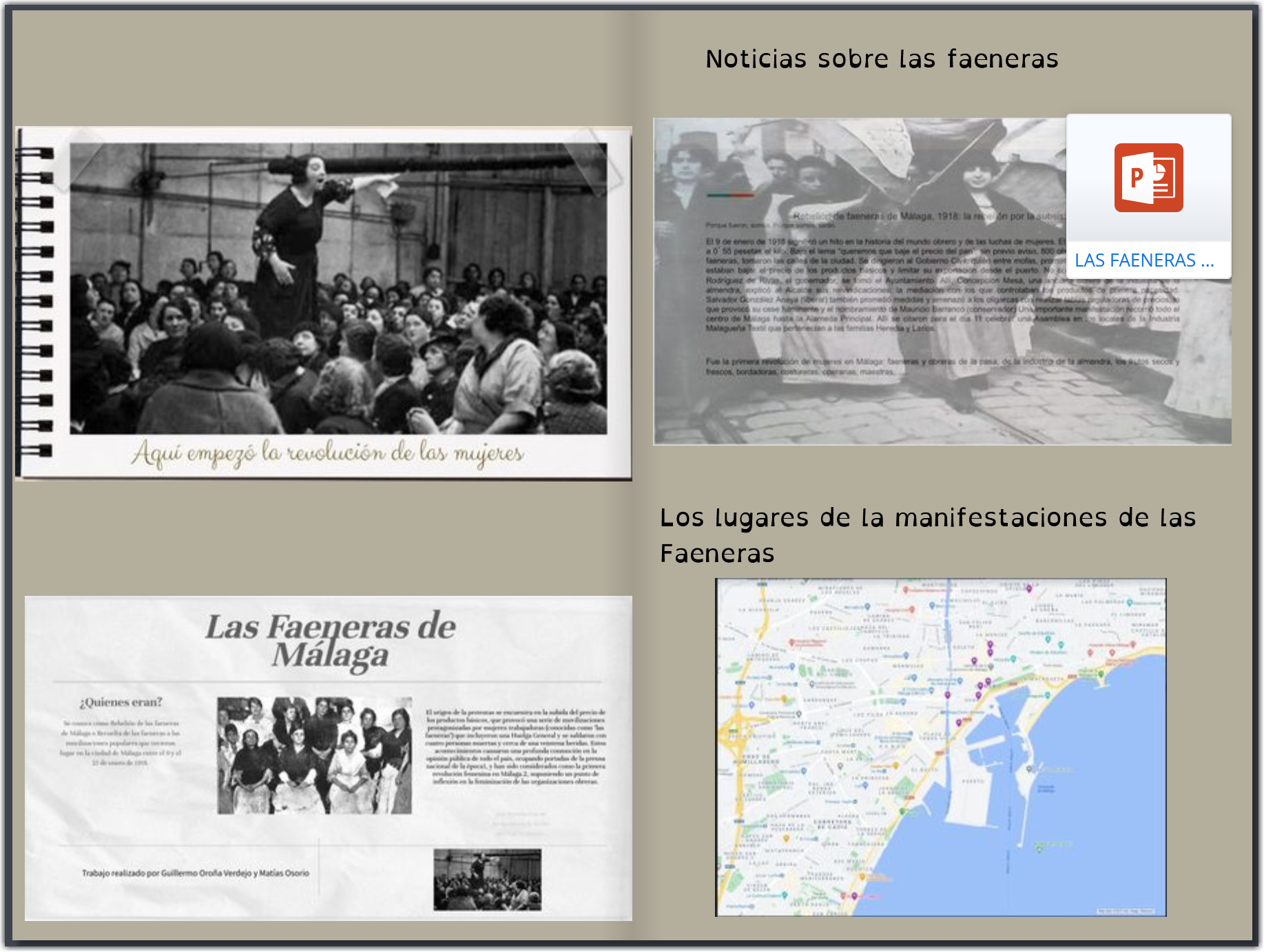 - Plantearon el juego antes y después con genially. Fotos de Málaga y sus lugares en esa época y en la actualidad.