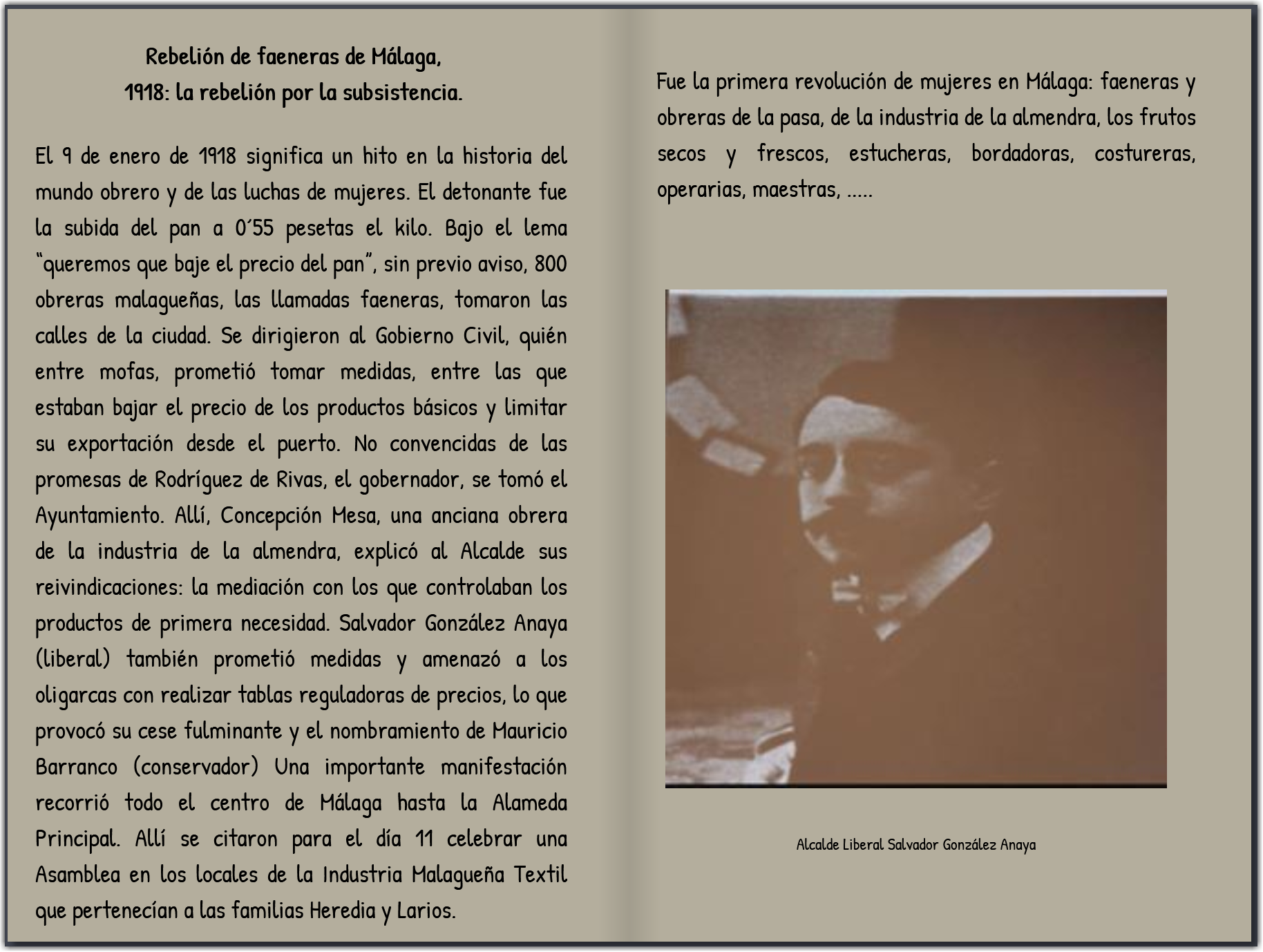En esta ocasión, hemos traído a nuestro presente a las Faeneras de Málaga. Unas mujeres que salieron a la calle para protestar por el alto precio del pan, coincidiendo con el “Trienio bolchevique andaluz” y el despertar del Movimiento obrero.