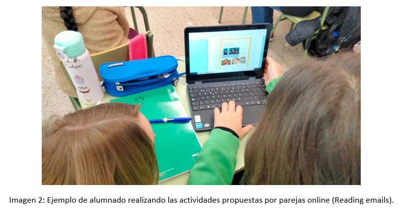 Imagen 3, 4 y 5: Ejemplo de alumnado realizando las actividades propuestas, tanto gramaticales como de vocabulario, en diferente tipo de agrupación.