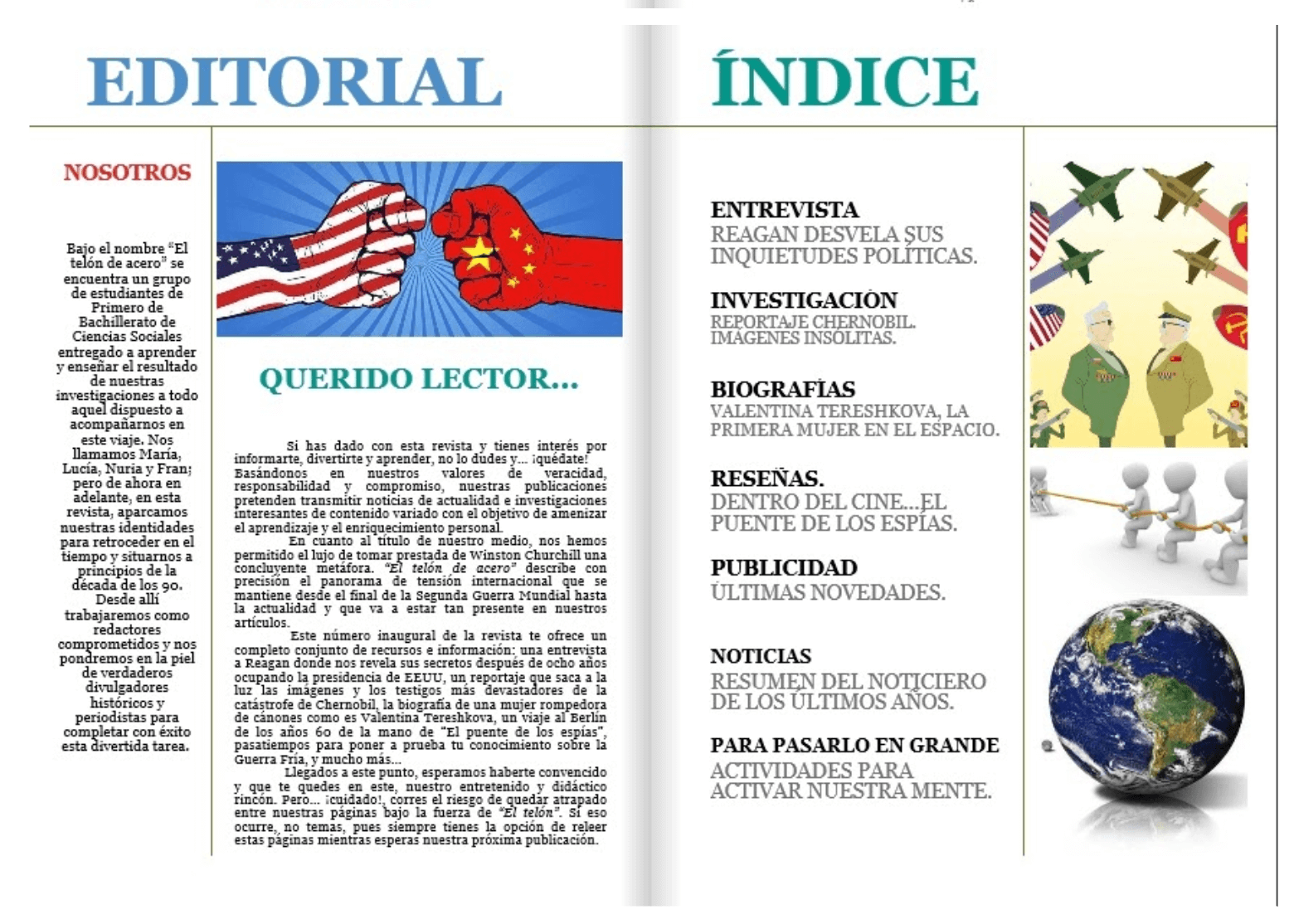Revista con varias actividades insertadas sobre la Guerra Fría