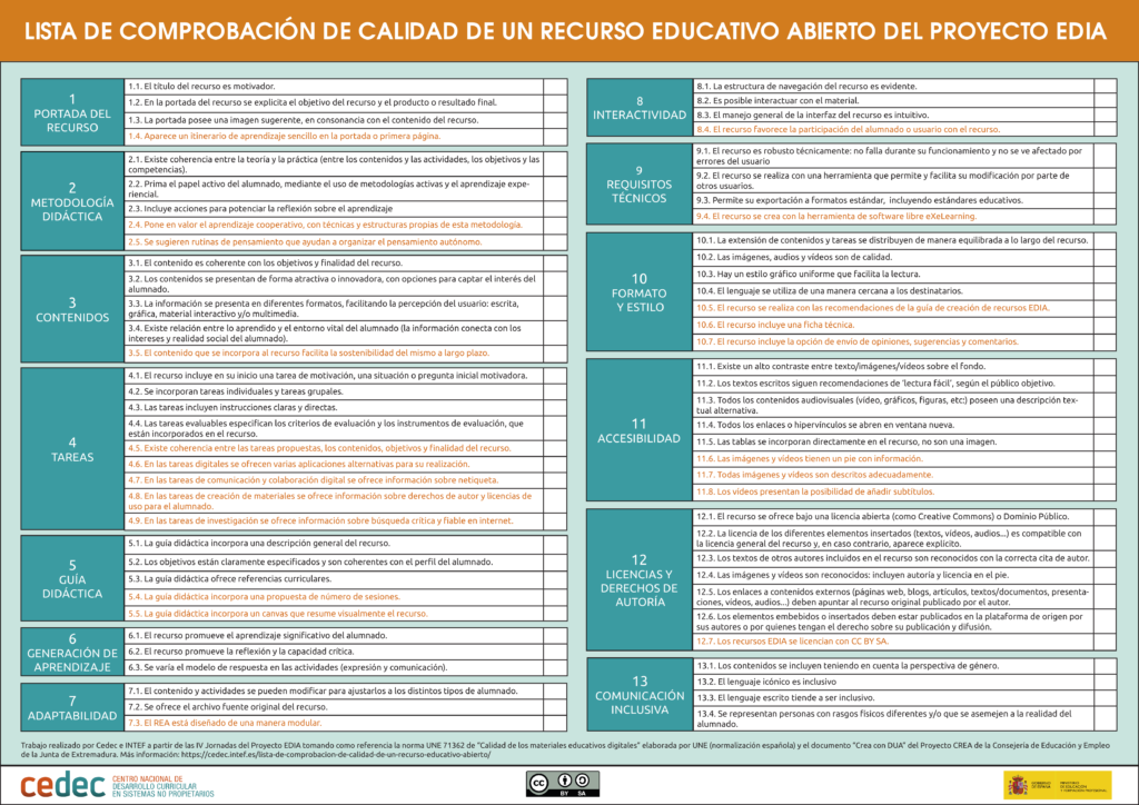 Se puede conocer más sobre esta lista y, por lo tanto, sobre el valor de la Insignia en la lectura detallada del artículo «Lista de comprobación de calidad de un Recurso Educativo Abierto».