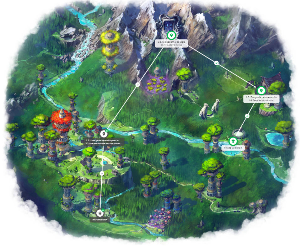 El contenido fue dividido en seis bloques temáticos a modo de niveles o diferentes escenarios vinculados a los distintos capítulos de la narrativa. En cada nivel se presentaba un número variable de tareas u “objetivos” que se debían superar para poder seguir avanzando. El conjunto de actividades y su vinculación con el currículo pueden consultarse en la página del proyecto.