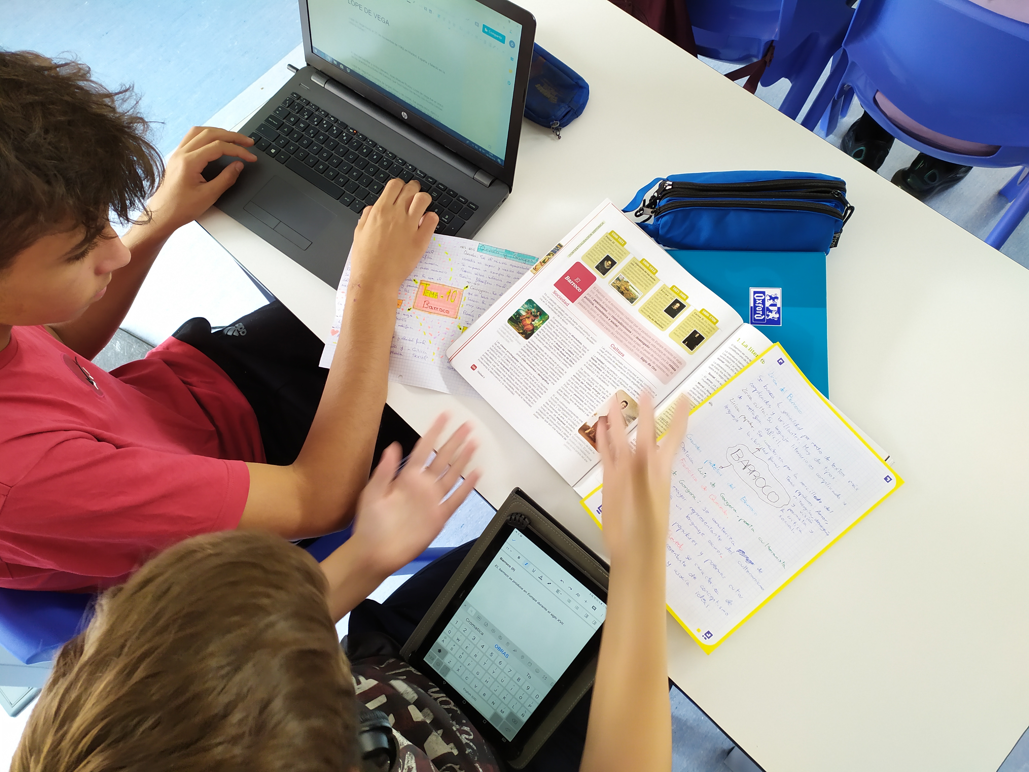 – Aprendizaje cooperativo: los alumnos integran grupos cooperativos heterogéneos y trabajan conjuntamente y de manera colaborativa gracias al entorno de Google Suite, compartiendo carpetas y documentos en Google Drive. Resultaba emocionante ver cómo los 37 alumnos trabajaban al mismo tiempo en una hoja de cálculo colaborativa volcando los resultados de sus investigaciones (que combinaron la búsqueda de información, la lectura y su posterior análisis, el envío de correos e incluso llamadas telefónicas, en un completo trabajo de campo) y comprobar cómo ese gran puzzle cobraba vida en tiempo real. Cabe señalar que en nuestro Colegio el centro el aprendizaje cooperativo lleva implantado siete años y los alumnos están habituados al uso de roles y habilidades sociales y comunicativas, lo cual favorece mucho la dinámica de trabajo.