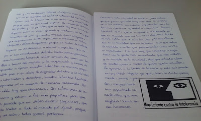 Aprovechamos para autoevaluarnos, evaluarnos entre pares y evaluar a nuestros compañeros de grupo e incluso también al proyecto y al profesor. La actividad se complementó con un Taller contra la Intolerancia que consistió en charlas contra los delitos de odio realizadas por la ONG “Movimiento contra la Intolerancia”.